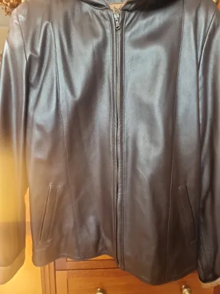 Cazadora de piel. Nueva. Tiene tres bolsillos exteriores, uno de ellos en la manga izquierda. Dos bolsillos interiores.