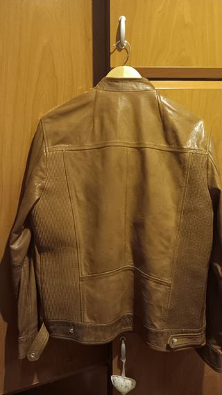 Cazadora de piel. Bolsillo interior con cremallera. Está muy cuidada. Tiene una manchita en la parte trasera. Se aprecia en las fotos. Comprada en la casa de la piel. Talla 52.