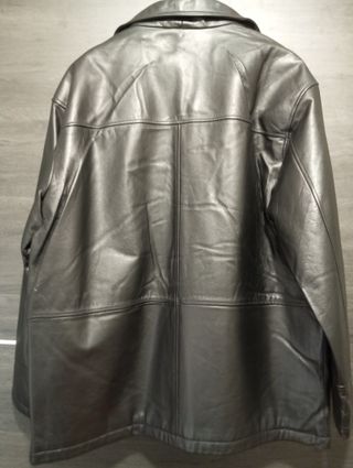 de piel Vintage color negro -gris talla 58 largo 75 ancho 69 manga 76 lleva dos bolsos con cremallera y un bolso interior