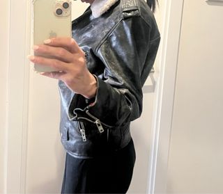 Solo hago ventas por envíos . Cazadora de piel con un diseño único de edición limitada. - Material: Piel ovina . - Cierre de cremallera. - Puños y cuello elásticos. talla XS . nueva