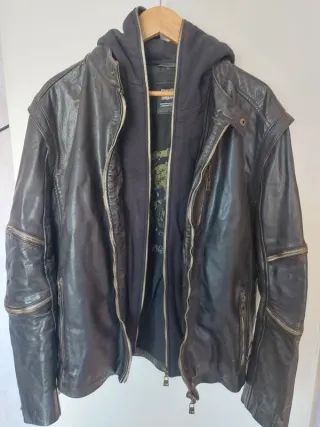 cazadora motero piel, usada solo 2 veces,!!! está como nueva. Costo 420€