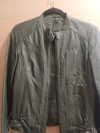 Cazadora de piel color verde.