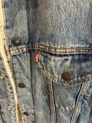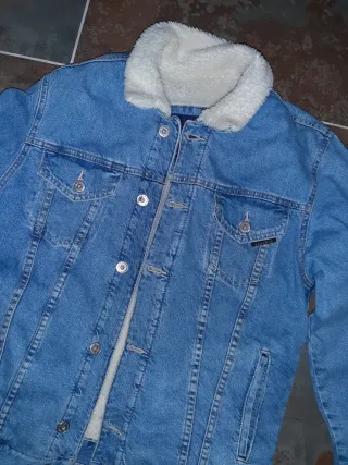 Cazadora vaquera clásica con forro interior de borreguito para mayor calidez. En un estafo muy bueno . - Cuello forrado. - Cierre de botones. - Bolsillos en el pecho.