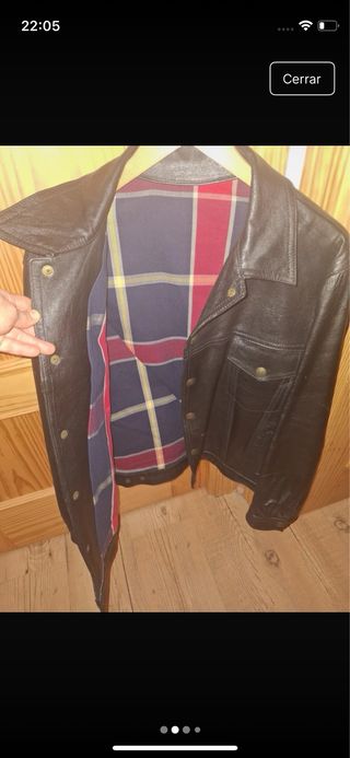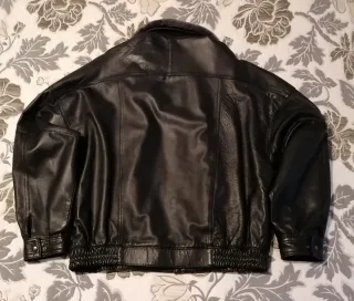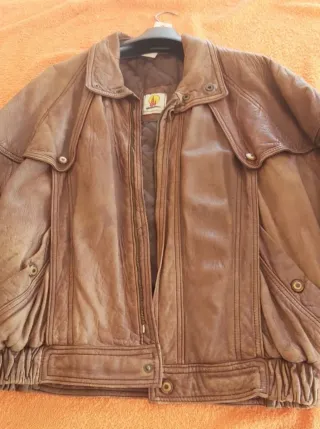 Cazadora vintage de piel auténtica. - Diseño clásico. - Cierre de cremallera. - Bolsillos frontales. La marca,no es la que pone,porque no tiene marca ,ni talla,fue una cazadora hecha a medida para mi padre es antigua y con una puel buenísima,de hace40añoa