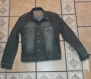Cazadora vaquera clásica en talla L, color negro desgastado. Un básico para cualquier armario. - Cierre de botones. - Dos bolsillos en el pecho con solapa. - Cuello camisero. - Utilizado una sola vez. Precio: 10 euros