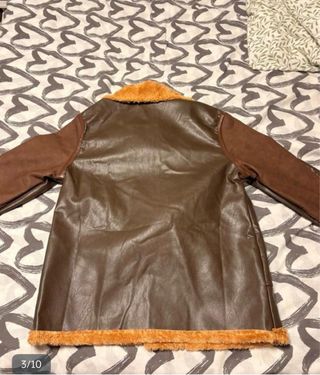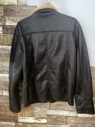 Cazadora de estilo aviador con exterior efecto piel y forro interior de borrego. Usada dos veces. Esta nueva - Cierre de cremallera. - Cuello con solapas. - Puños y bajo con detalle de borrego.