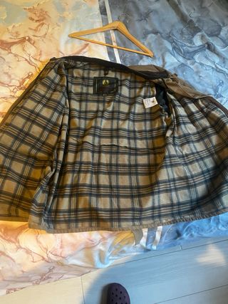 Cazadora de la marca Belstaff en talla S. Un clásico atemporal con un diseño icónico. - Cuatro bolsillos frontales con botones. - Cinturón ajustable a la cintura. - Cierre de cremallera y botones. - Forro interior a cuadros.