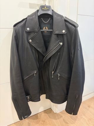 Cazadora de hombre de la marca Belstaff.Usada un par de veces , en perfecto estado ,la talla es una XXL , este tipo de cazadora es bastante larga de manga #belstaff#motera - Diseño moderno y elegante. - Cremallera frontal. - Bolsillos con cremallera.