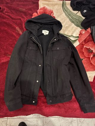 Cazadora de la marca Pull and Bear en color negra me costó 120e hace dos años.Se puede ver y probar sin compromiso. - Diseño con capucha. - Cierre de botones a presión. - Bolsillos delanteros con solapa y botón.Zona hotel Bali no negociable y tampoco realizó envío.