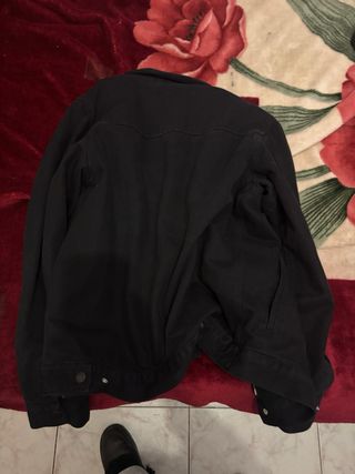 Cazadora vaquera de color negro. - Cierre de botones. - Dos bolsillos en el pecho con solapa y botón. - Dos bolsillos laterales. - Cuello camisero.