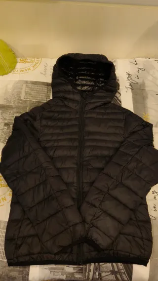 Cazadora acolchada de color negro. - Diseño ligero y con capucha. - Cierre de cremallera frontal.