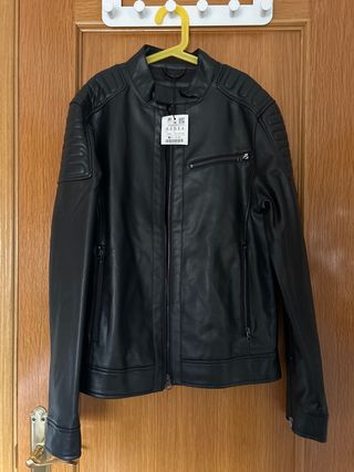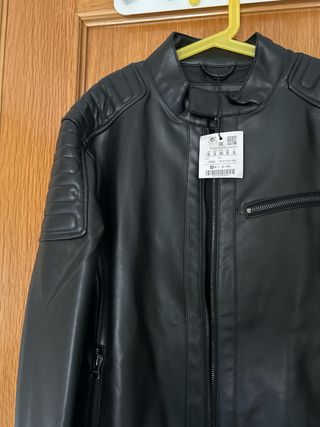 Cazadora estilo biker con acabado en efecto piel. se vende porque fue un regalo y no pude cambiarlo de talla porque perdí el ticket. Descuento 10€ del producto original como se ve en las fotos - Cierre de cremallera. - Cuello solapa. - Bolsillos con cremallera.