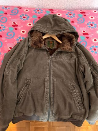 Cazadora de hombre con forro interior de borreguito. - Diseño moderno. - Cierre de cremallera. - Bolsillos laterales. - talla S - USADO 2 veces nada más