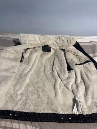 Chaqueta negra Pull and Bear Cazadora con exterior efecto ante e interior de borreguillo, con bolsillos laterales y cierre de cremallera. - Diseño corderito. - Cierre de cremallera. - Bolsillos laterales. - Poco uso - Año 2024