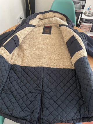 Cazadora larga con borreguillo en color Azul Marino. Abriga mucho y está en perfecto estado.