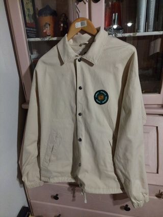 Cazadora estilo universitario con mangas de diferente color. - Cierre de botones a presión. - Cuello y puños con detalles de rayas. - Parche bordado en la parte delantera. Apenas usadas . Está en perfecto estado.