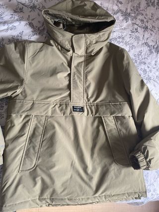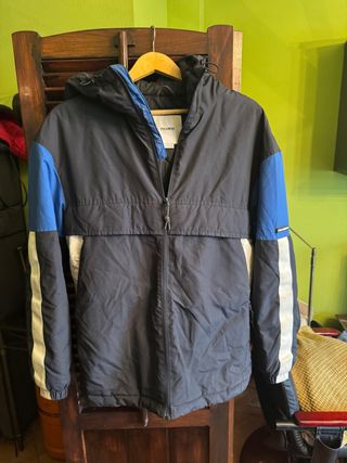 Se vende cazadora pull & Bear, fina de entretiempo, con capucha y varios usos, pero en muy buen estado. Talla M.