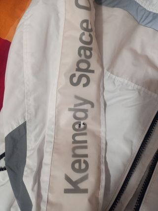 Chaqueta bomber blanca estilo NASA. Tiene un pequeño toque en la manga. - Diseño inspirado en la NASA con detalles en azul y gris. - Cierre de cremallera. - Bolsillos laterales.
