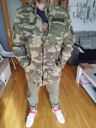 Cazadora militar con un diseño moderno y cálido forro polar. Se encuentra en perfecto estado, como nueva. - Estampado de camuflaje. - Cierre de cremallera. - Bolsillos frontales.