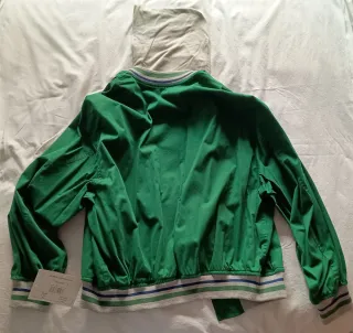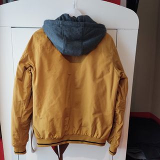 Cazadora tipo Jersey, talla L color mostaza preciosa con cremalleras laterales y bolsillo, capucha ajustable, la sombra que se aprecia es mi brazo sujetando el móvil para hacer una foto, está perfecta en ese sentido, no tiene ninguna mancha