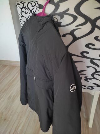 Cazadora de invierno, muy calentita. Poco uso, el cuello de pelo se puede quitar y poner pues lleva cremallera. Está en perfecto estado, solo lleva un pelín desgastado el tirador de la cremallera, que se ve en la foto. Muy práctica porque lleva un montón de bolsillos, también interiores y muy bien forrada.