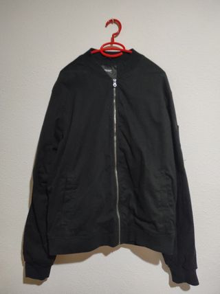 Cazadora de la marca Pull&Bear. - Talla XL. - Color negro. - Diseño de outerwear. - Estilo departamento.
