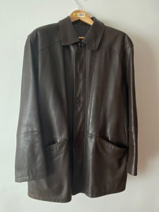 Abrigo de Ramón Sanjurjo, color marrón chocolate, cuero real, abrocha con botones y cremallera. Con bolsillos. Cuero muy suave y de primera calidad, forro, apenas usada. Hecha en España. Made in Spain. Hombros 54 Axila 60 Manga 60 Largo 86 Chaquetón cazadora parka cuir leather pel coiro pelle elegante clásica caballero regalo invierno abrigo otoño forrada oscura rebaja chollo oportunidad urge barato ganga trenka moda gallega Galicia peletería zara inditex man massimo cortefiel