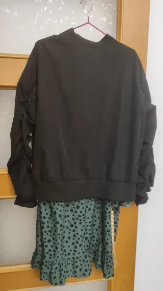 Cazadora estilo bomber de Zara, cuello subido. Manga larga acabada en puño con trabillas en hombros. Bolsillos laterales. Forro interior combinado. Cierre frontal con cremallera y sopata con botones a presión.