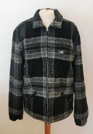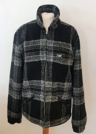 Chaqueta de la marca ALLSAINTS con un diseño de cuadros en blanco y negro. Presenta un cierre de cremallera frontal y bolsillos. Diseño de cuadros. Cierre de cremallera. Bolsillos con cremallera en el pecho + 2 delanteros. Puños abiertos con botón. Talla MEDIUM: Medidas de axila a axila: 57cm De Cuello a cintura: 71 cm En perfecto estado. Se ha usado un par de veces. Se entrega lavada.