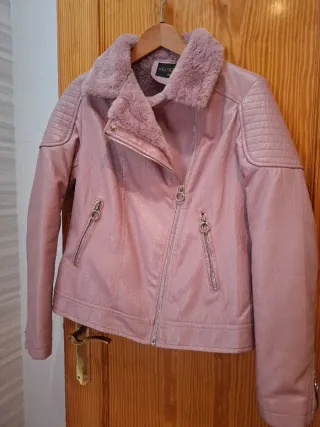 Cazadora polipiel forrada rosa