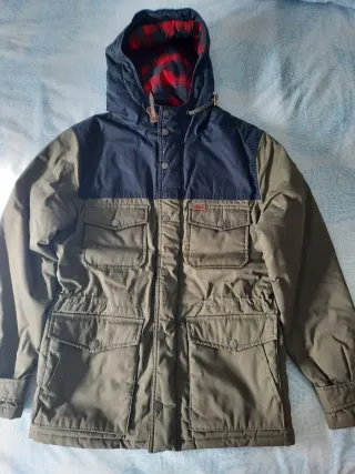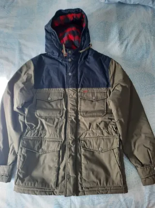 Abrigo hombre marca Element, talla S. Capucha, cordón ajustable en la cintura, acolchado, impermeable