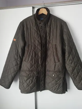 Cazadora acolchada de hombre con cuello de pana. - Cierre de botones. - Dos bolsillos delanteros con solapa. Está en buen estado. Desgastada la etiqueta. Ideal entretiempo.