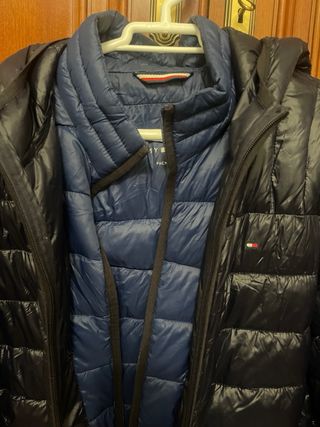 Abrigo acolchado de Tommy Hilfiger en color azul marino. Presenta un diseño moderno y funcional con excelente estado.