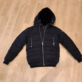 Cazadora acolchada y abrigada. - Cierre de cremallera frontal. - Dos bolsillos laterales con cremallera. - Bolsillo superior en el pecho con cremallera. Talla 52 Solo se uso una vez
