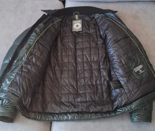 Cazadora de invierno para hombre, con un diseño moderno y funcional. - Color verde oliva. - Talla M (equivalente a 38-40 / 48-50). - Cierre de cremallera. - Múltiples bolsillos exteriores.
