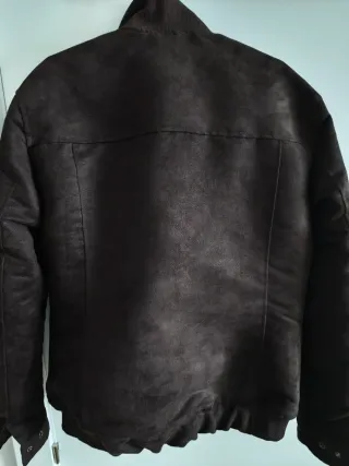Cazadora de hombre con acabado efecto piel tipo bomber. Talla S. Sin etiquetas pero sin estrenar . Está nueva. Color marrón chocolate. - 2 bolsillos laterales - Cremallera frontal. - Cuello y puños elásticos.