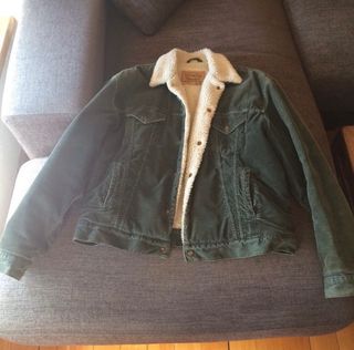Chaqueta Levis con borrego dentro, original comprada en 1997. Exterior de pana en color verde, difícil de encontrar en este color ya que los típicos eran el marrón claro y oscuro. Muy bien conservada para sus años. Talla XXL, pero me viene justa ya. Tags: chaqueta cazadora borrego levis Strauss levi’s pana jersei sueter moda ropa complementos