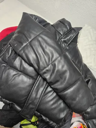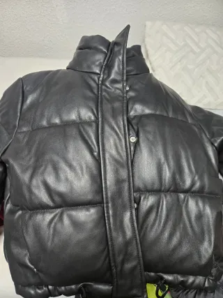Cazadora de polipiel con un diseño acolchado y cuello alto. - Cierre de botones. - Puños elásticos. - Cordón ajustable en el bajo. NO ENVÍO POR CORREOS.CANCELARÍA PEDIDO.GRACIAS La chaqueta está usada,se puede ver claramente fotografías donde ha saltado la polipiel en las mangas. Una manga peor que la otra.Por el resto está muy bien. #chaquetapolipielnegra #chaquetapolipielzara