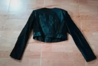LEER DESCRIPCIÓN COMPLETA 👇 Cazadora de mujer color negro, ESPECTACULAR, con MANGAS DE ENCAJE que le da un toque muy elegante. Es entre cazadora y torera(ver todas las fotos)ya que es a la altura de la cintura Cierre por cremallera cruzada Es MUY ORIGINAL, poco común y MUY DIFICIL DE CONSEGUIR! Verán muy pocas iguales Material polipiel OJO! Aunque pone una talla"L" equivale a una"M"una 38/40 dependiendo del cuerpo de cada una En las fotos la puse para que se den una idea de cómo queda,yo uso una 36-38 y me queda un poco grande. Está IMPECABLE ya que sólo se puso para las fotos Ver fotos,ampliando imágenes del anuncio NO NEGOCIABLE