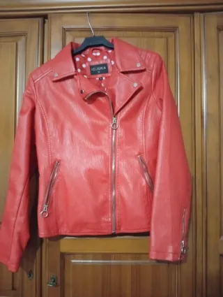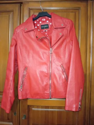 Cazadora polipiel rojo tirando a fresa talla 38.