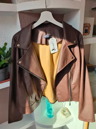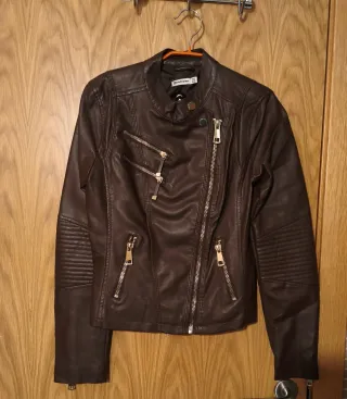 Cazadora de polipiel marrón chocolate - Diseño tipo biker. - Cierre de cremallera. - Botones metálicos. -Para entretiempo -Dá para talla M/L