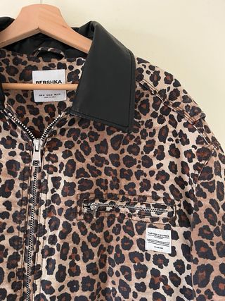 Cazadora con estampado animal print y cuello de polipiel. - Cierre de cremallera. - Bolsillos frontales.