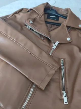 Cazadora de polipiel con un diseño moderno y versátil. Nueva sin estrenar. Haz una oferta. Si te llevas dos de 30€ te los dejo a 50€.