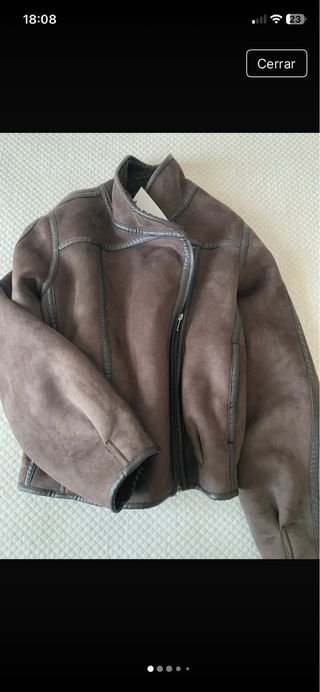 Cazadora de efecto ante con detalles en polipiel. De esta temporada. Forrada de borreguito muy suave y calentita.