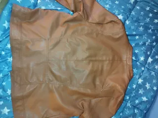 Cazadora o chaqueta estilo MOTERO de polipiel y de la firma de moda PULL & BEAR. Unisex, tanto para hombre como mujer. En original color entre marrón y mostaza. No es nueva pero bien cuidada, sin ningún roto ni deterioro. Tiene un color algo desigual e ideal tanto para vestir de forma casual como para ir en moto. Con refuerzos y acolchado extra en hombros y coderas. Varios bolsillos tanto interiores como exterior. Cierres de cremallera. Talla M. Mide 66 de largo. 52 entre axilas y 49 cintura. Precio muy rebajado pues costó casi 100€