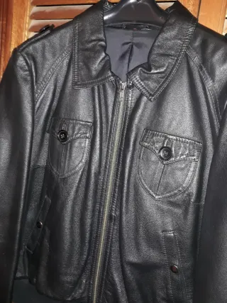 Vendo cazadora estilo aviador efecto piel, con parches decorativos. 🛠️ Estado: Buen estado general Sin roturas Cremalleras en buen funcionamiento 📌 Detalles: Talla 38 Material efecto piel (polipiel) Color negro Diseño con parches estilo militar / aviador 🤝 Precio negociable / mejor precio en mano. 📍 Entrega en mano en Madrid (Zona Palomeras Sur) o disponible para envío. 📩 Cualquier duda, escríbeme sin compromiso.