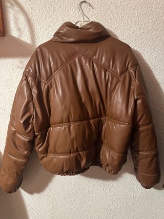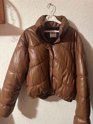 Preciosa cazadora acolchada de Zara en color marrón. Está en muy buen estado y es perfecta para el entretiempo. - Talla: (Añadir talla) - Corte: cropped - Material: polipiel