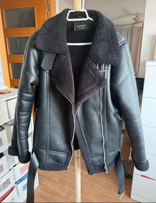 Cazadora Biker Pull&Bear Negra Borreguito