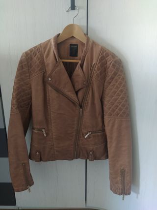 Chaqueta cazadora biker en polipiel de color beige Talla XS Stradivarius Utilizada un par de ocasiones, está como nueva