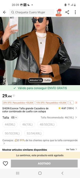 Cazadora Shein talla grande efecto polipiel...talla 48/ 52Nueva sin llevar.